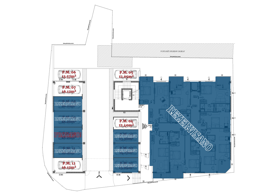 Pogledajte detaljan presjek sprata kako biste dobili jasan uvid u raspored stanova. Svaka jedinica je označena brojem, omogućavajući vam da jednostavno identifikujete i istražite različite opcije. Klikom na željeni stan, dobićete pristup detaljnim informacijama o njegovom dizajnu, parametrima i dostupnosti.